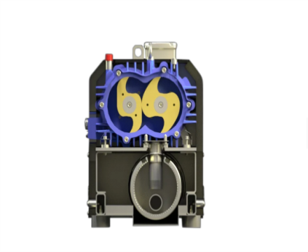 爪式泵由兩個(gè)轉(zhuǎn)子組成。它們?cè)趬嚎s機(jī)殼體中以相反的方向轉(zhuǎn)動(dòng),而不接觸,觀(guān)察到非常緊密的間隙。它們通過(guò)精密齒輪同步。當(dāng)爪子在吸力連接處和軸向吸氣通道入口處移動(dòng)時(shí),氣體被吸入壓縮室。